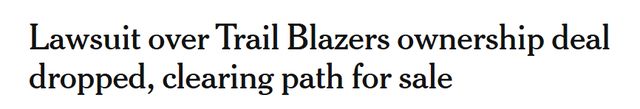 沃尔库诺夫指出,既然诉讼已被撤销,开拓者队即将进行的出售交易应能正常进行。